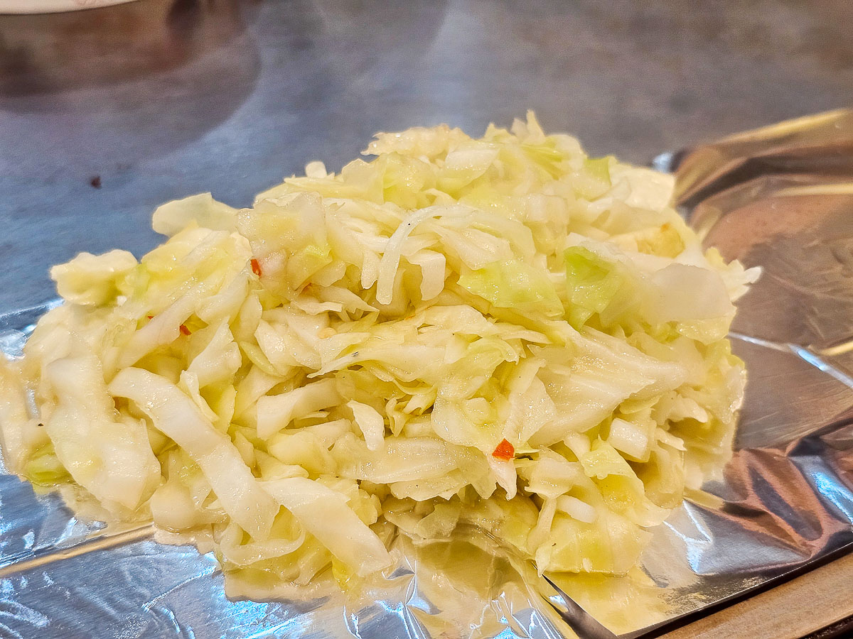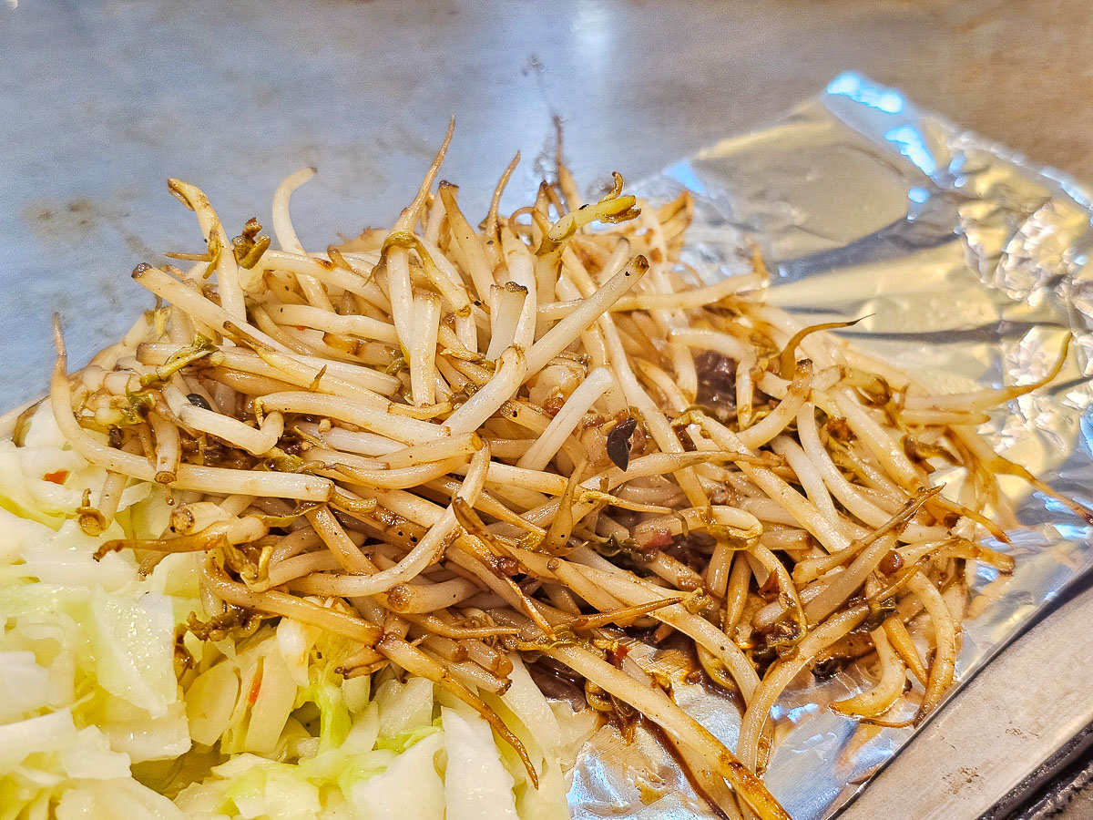 大埔鐵板燒 高雄新一心店另一個特別的地方是炒青菜,別家大埔的師傅都是看幾個人入座就一次炒大量青菜,比較省時間,一心店堅持品質,青菜都是少量炒的喔!所以人多就需要等一下