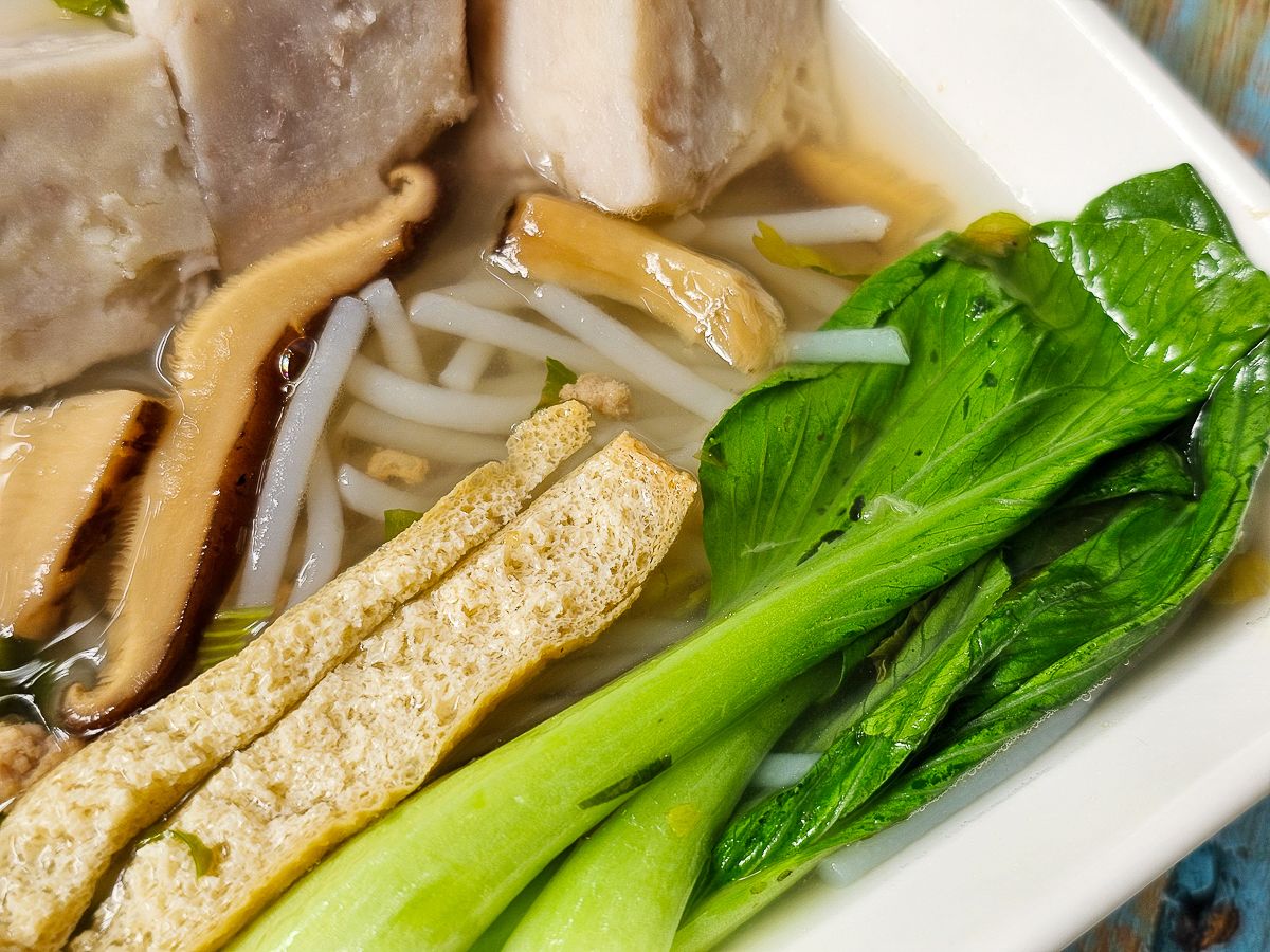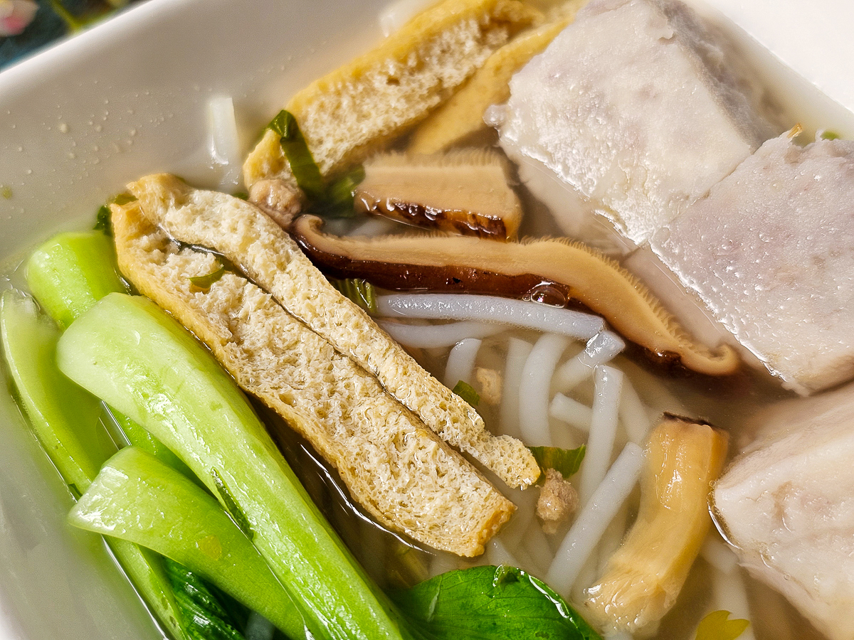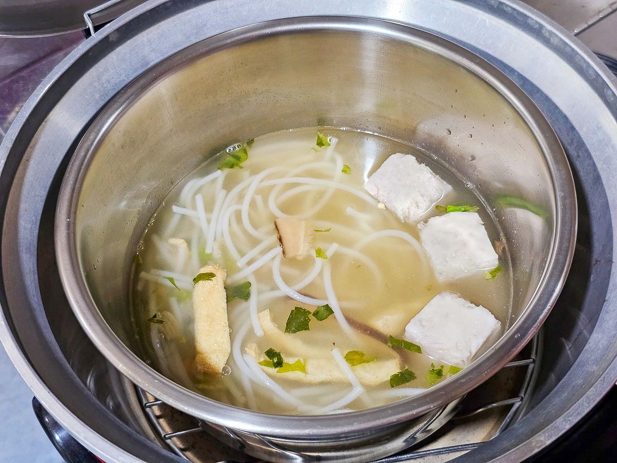最後再放入新鮮芋頭、豆皮、粉絲,就是一碗熱呼呼的巷口經典台式古早味!自己再丟一些青菜進去,營養立刻滿分!