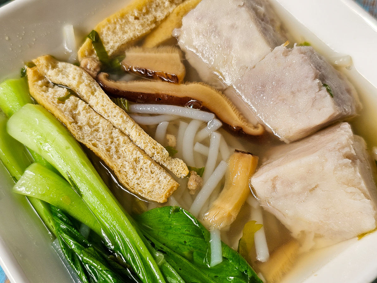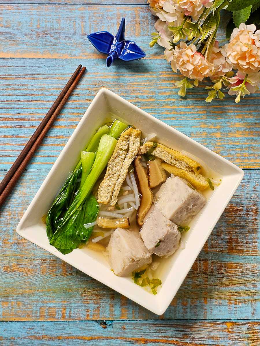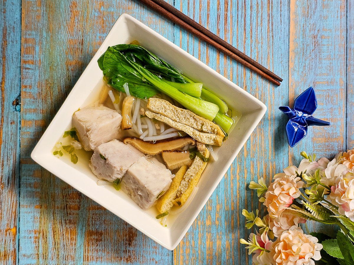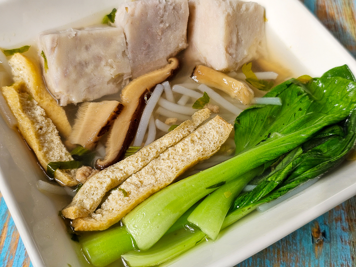 最後再放入新鮮芋頭、豆皮、粉絲,就是一碗熱呼呼的巷口經典台式古早味!自己再丟一些青菜進去,營養立刻滿分!