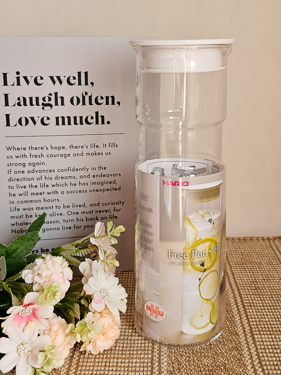 日本HARIO的冷泡水壺,是日本製造的喔!耐熱玻璃最高可以承受120度的熱水,想要冷泡熱泡都沒問題