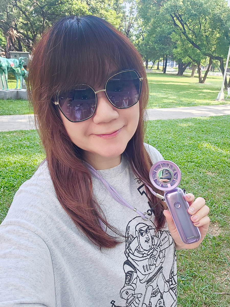 側邊按鈕按一下就有製冷功能,冰冰涼涼的貼著臉跟脖子瞬間降溫好舒服啊!連吹出來的風都變涼了!