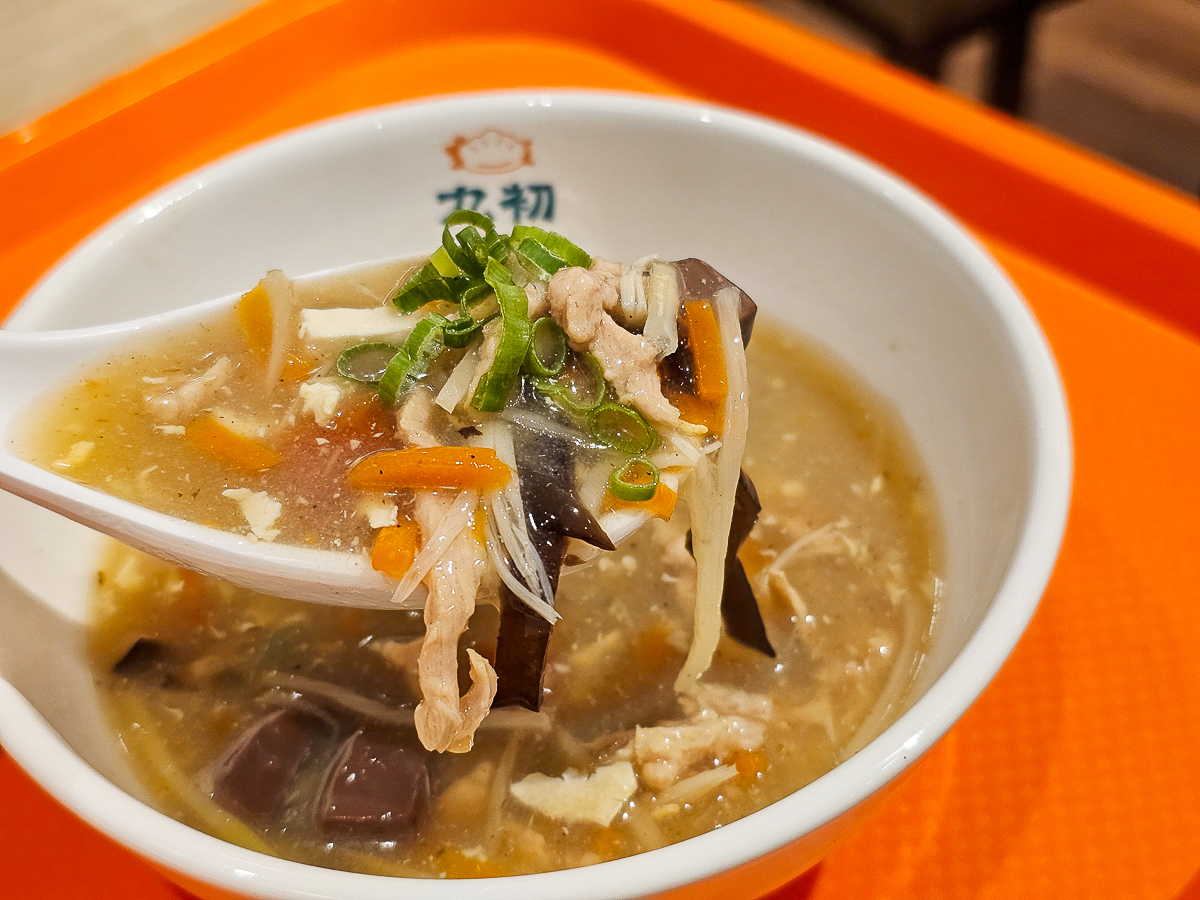 有點小碗,份量不多,不過用料蠻紮實的,有肉絲、豆腐、豬血、木耳、紅蘿蔔絲,是我喜歡的酸辣湯口感
