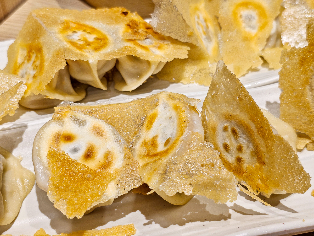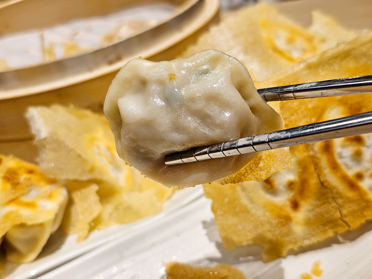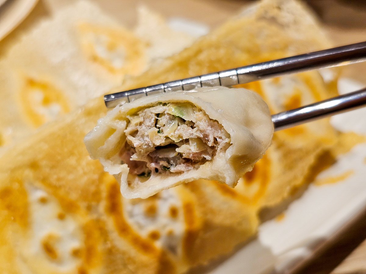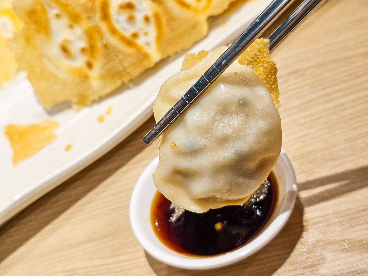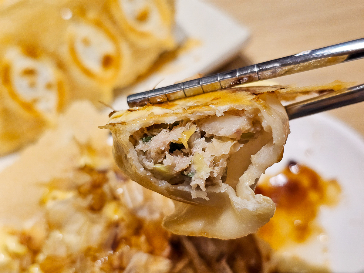 底部是酥脆口感,煎餃本身是軟嫩口感,外皮很Q彈