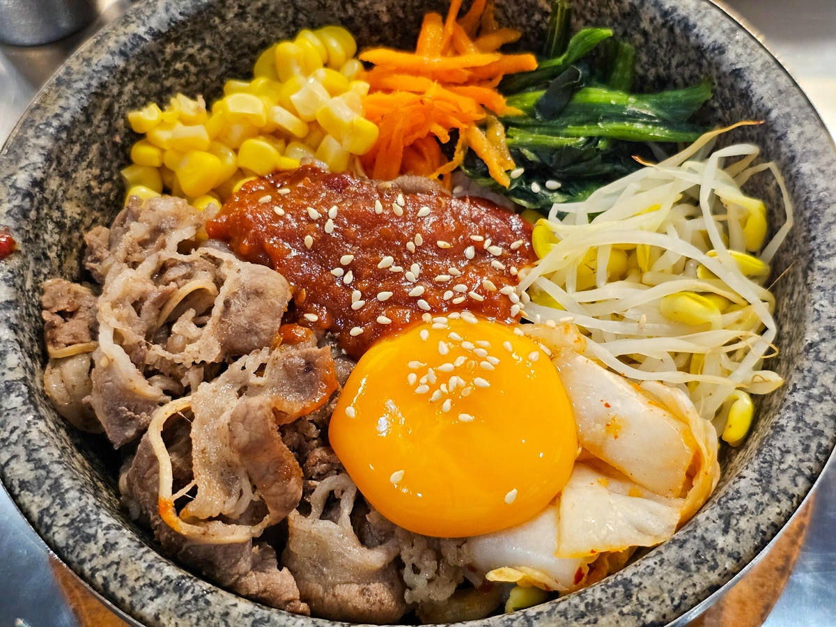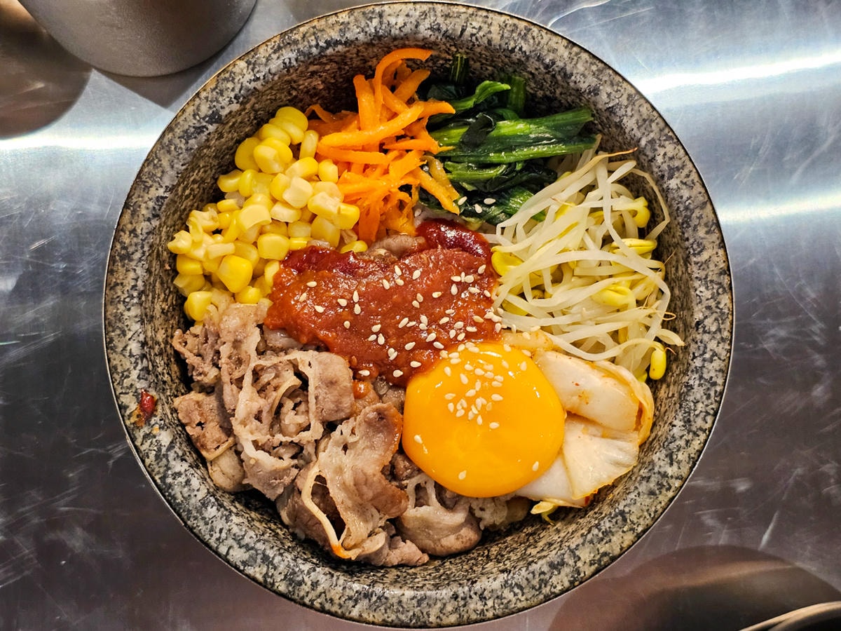 那顆又大又圓的蛋黃打得真是漂亮!底部的鍋巴超香,喜歡焦硬的口感可以稍等一下再拌勻,石鍋有保溫效果,吃到最後一口都是熱的真好