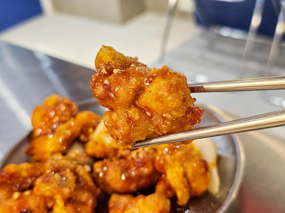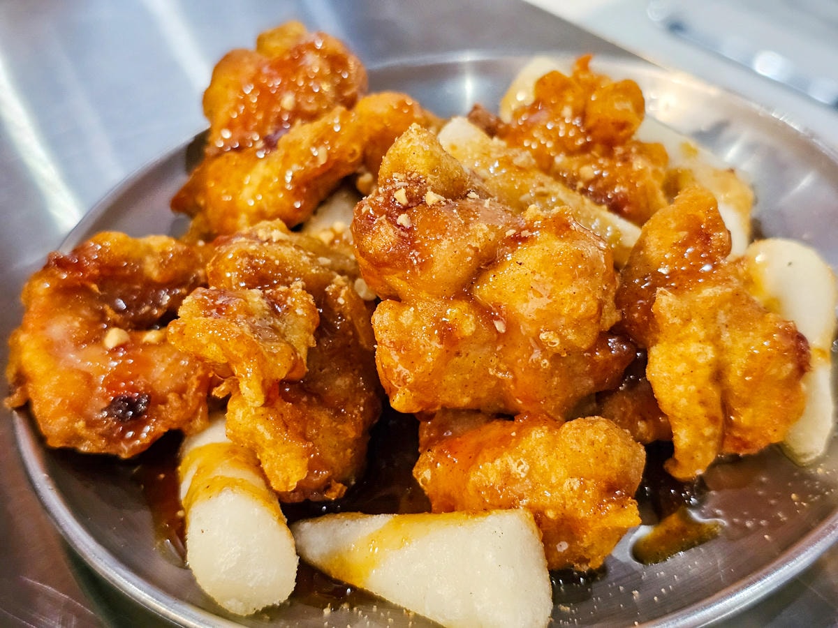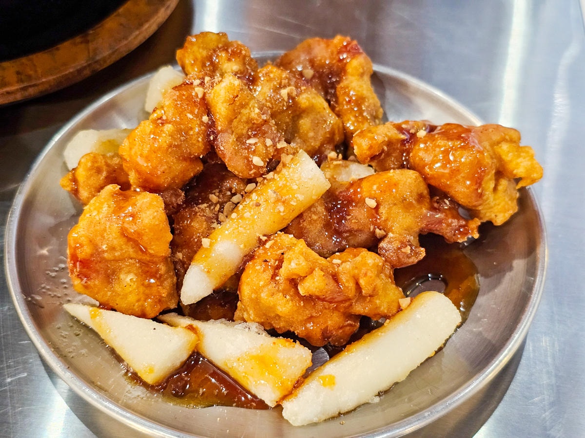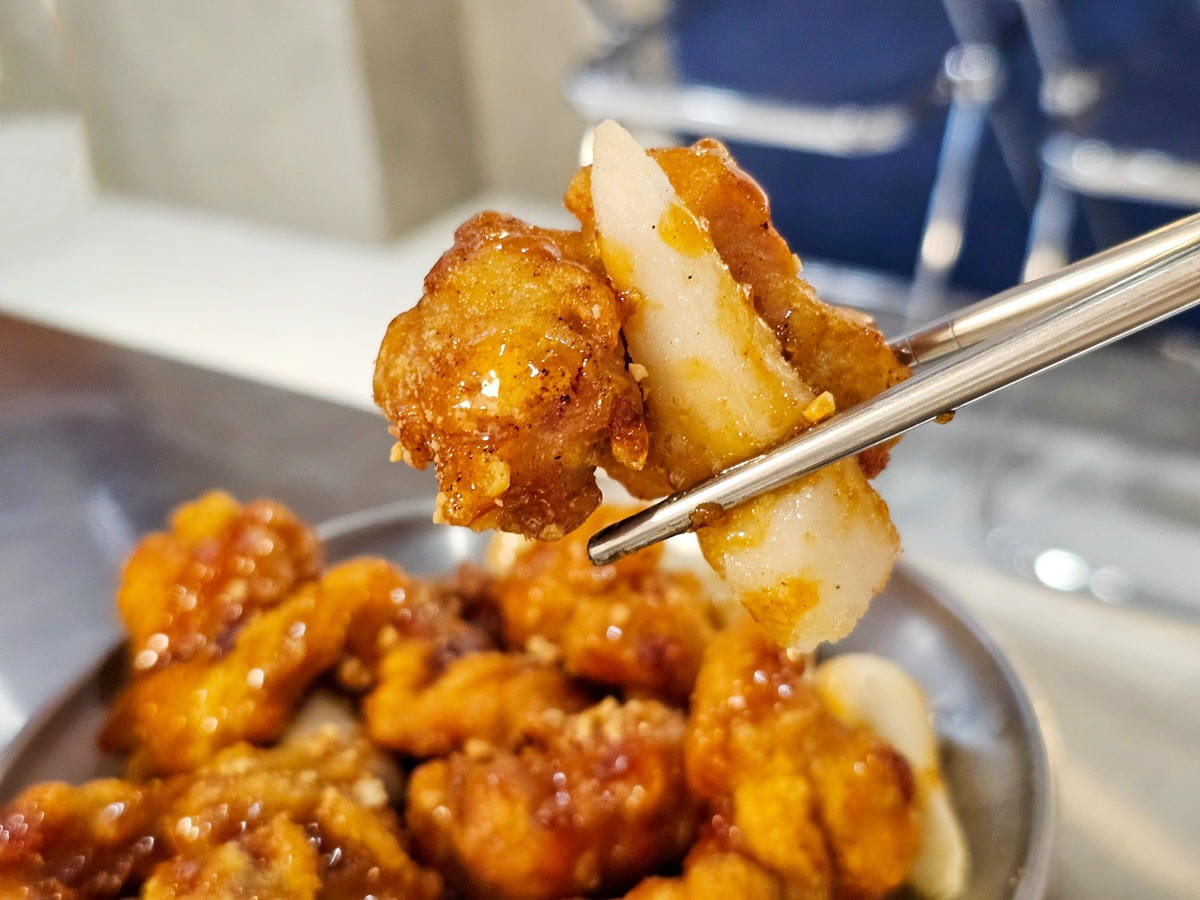 外酥內嫩不柴口的炸雞,搭配幾塊小年糕,鹹鹹甜甜的蜂蜜醬汁,2個人分享剛剛好,多吃可能會覺得小膩