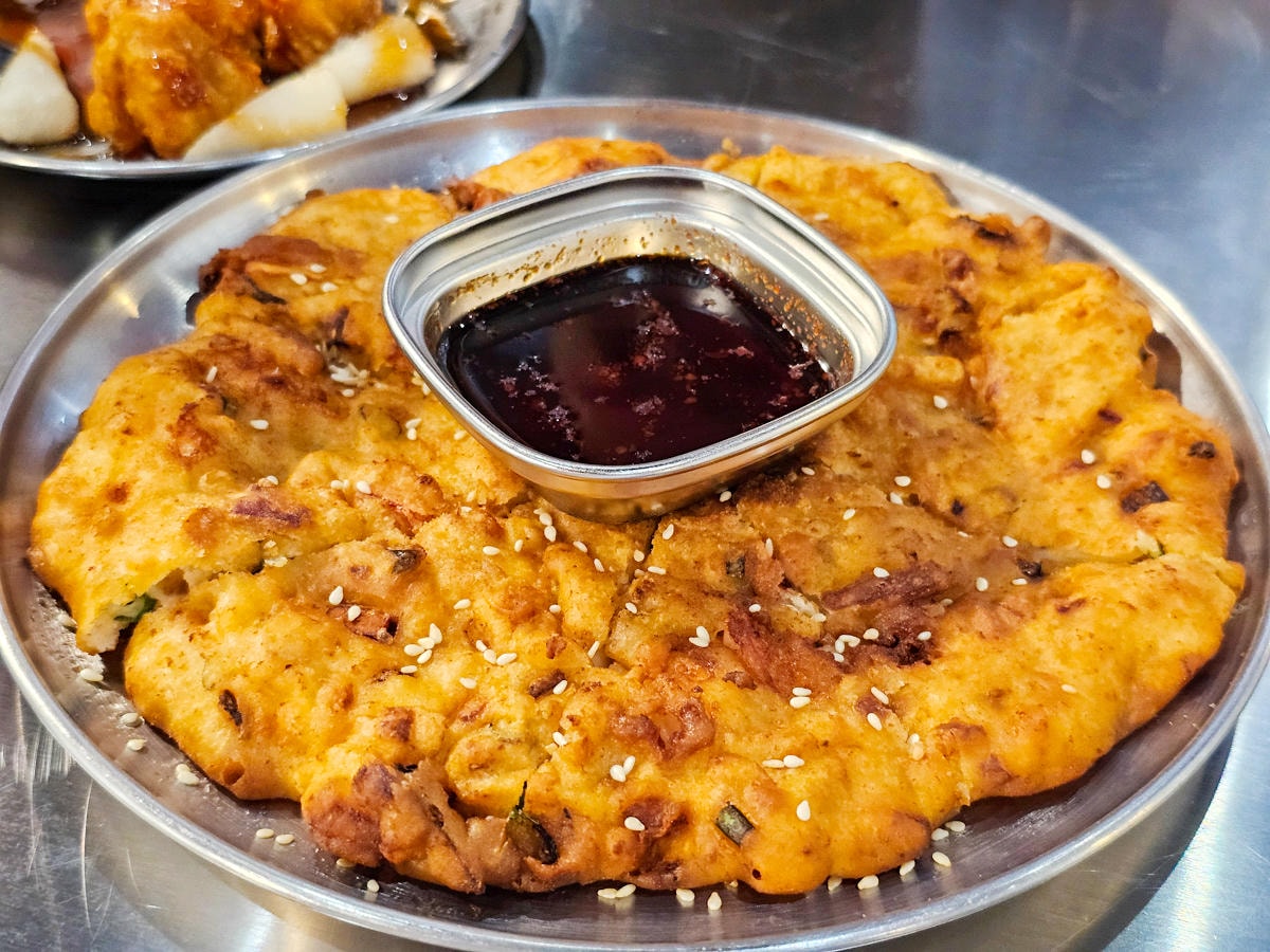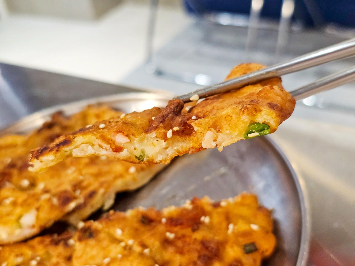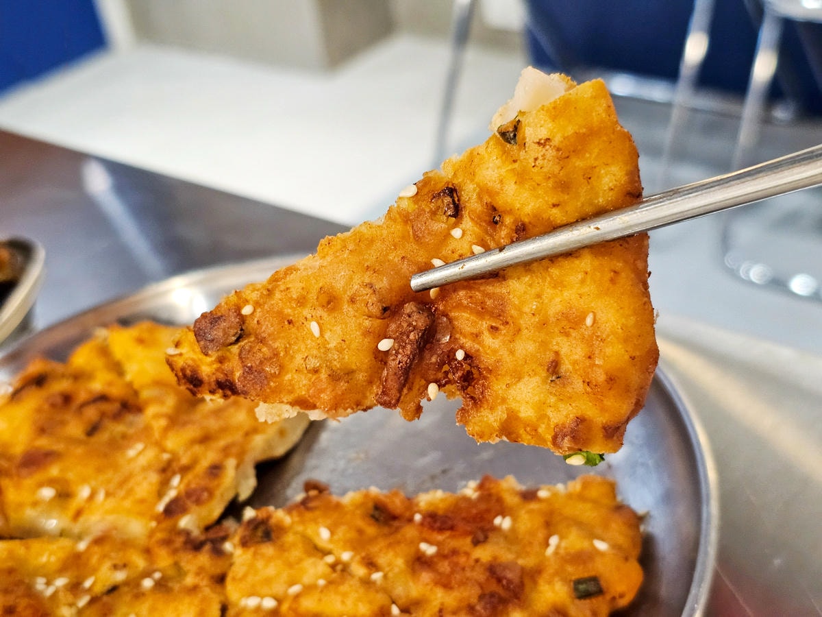 網友大推必點的海鮮煎餅,真的超噴香,恰恰的外皮超酥脆像餅乾一樣,沾醬吃更涮嘴