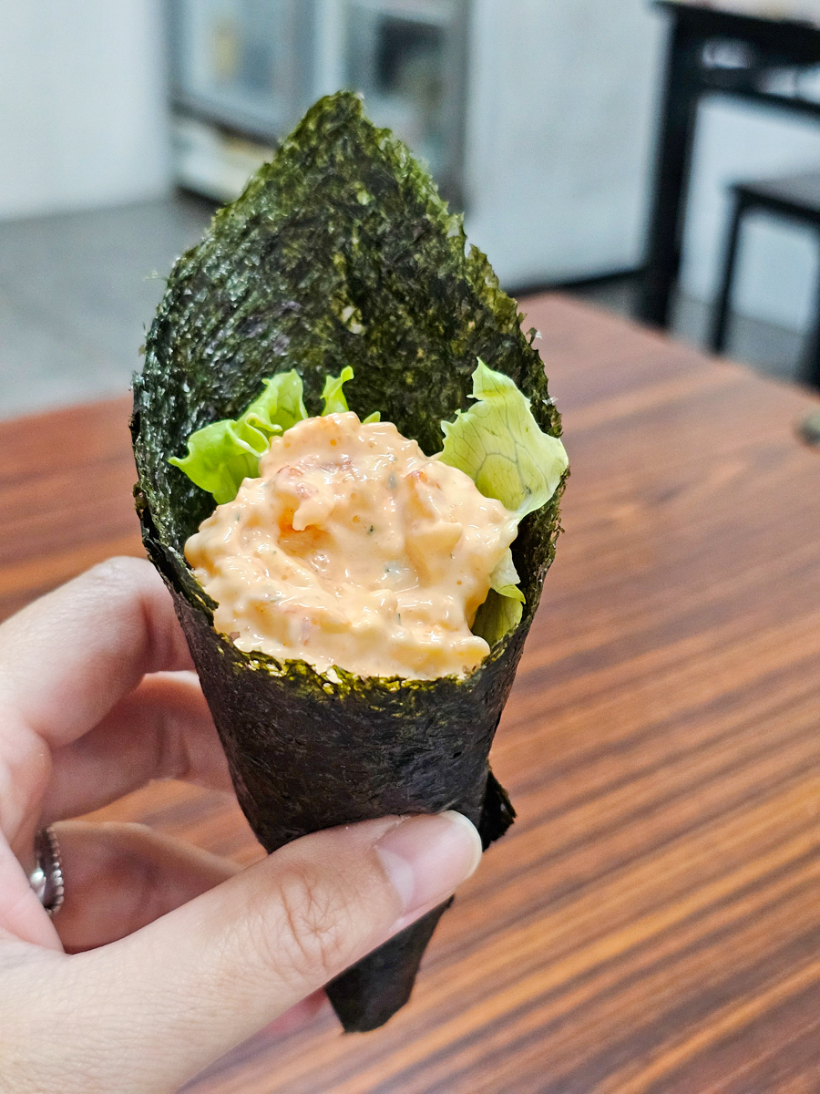 闆娘一直提醒我們要先吃手捲,放久了海苔軟掉口感會不好,一捲才30元好佛心啊!