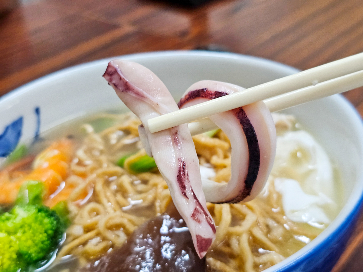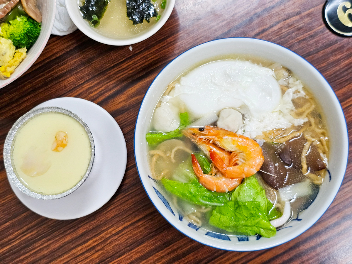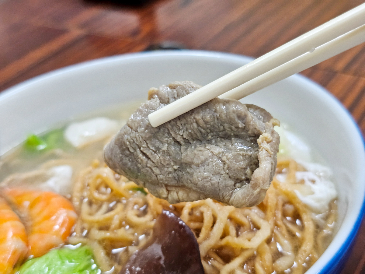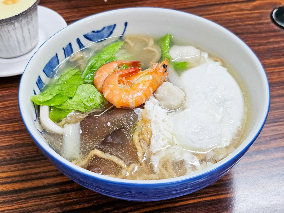 不但有蝦有肉片、魚丸,還有小捲!湯頭有淡淡的甘甜味,不加沙茶很爽口