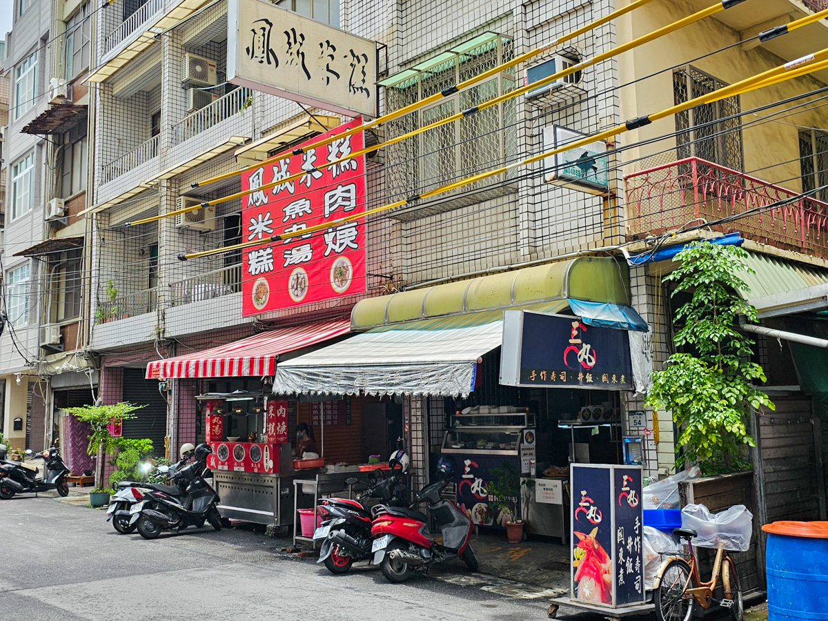 大東文化藝術中心周邊美食超多,因為在附近上課一個月,每天都在挖掘散步美食,無意中發現倆伯羊肉旁邊的巷子彎進去有兩家小店,分別是三丸手作壽司及鳳城米糕民生店,就開在隔壁,於是連續兩天都跑來吃看看~