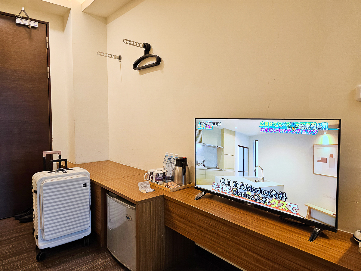 門後有掛衣空間,我們習慣先把衣服掛著通風,隔天再收進行李內,冬天用來掛外套更方便