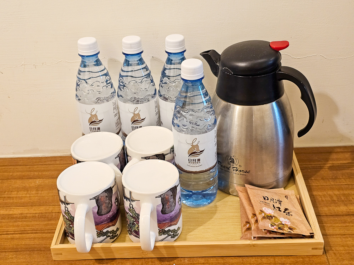 有提供礦泉水跟日月潭紅茶包,馬克杯上也有日月潭的彩繪好應景喔!