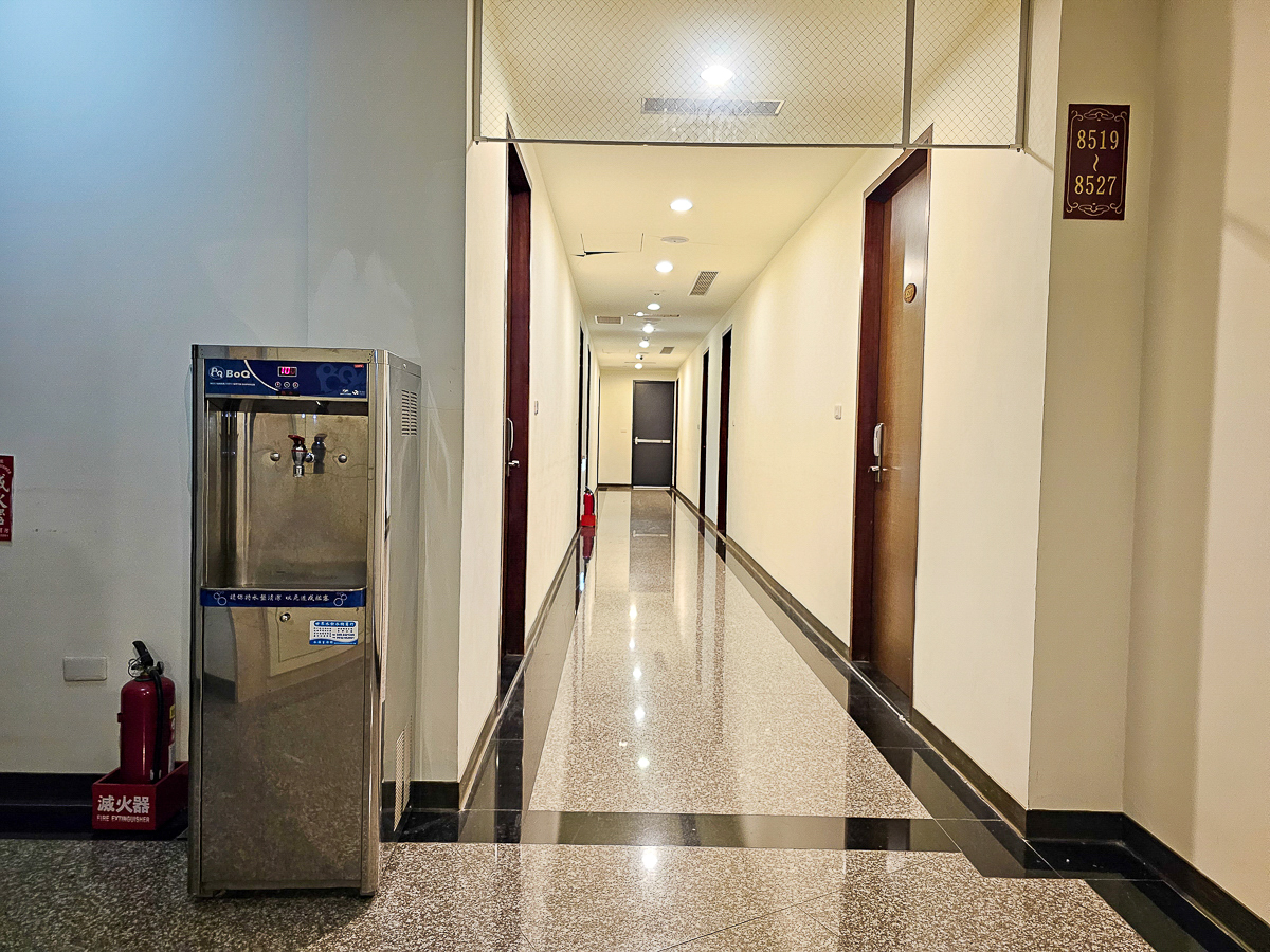 我們這次入住五樓的時尚四人套房,每一層樓的走廊上都有飲水機,想要泡茶或泡麵都方便