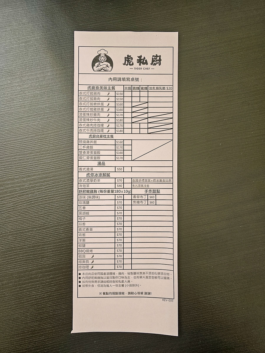 我們注意這家五甲新開幕的虎私廚很久了,是一家平價泰式料理,不在熱鬧的五甲路上,選擇隱藏在寧靜的林森路上,南成國小斜對面,專賣泰式、台式料理,也有泰式奶茶,還有舒肥嫩雞胸超特別,口味選擇非常多樣,我們也是觀察了一段時間,看網路評價很高決定來吃看看~