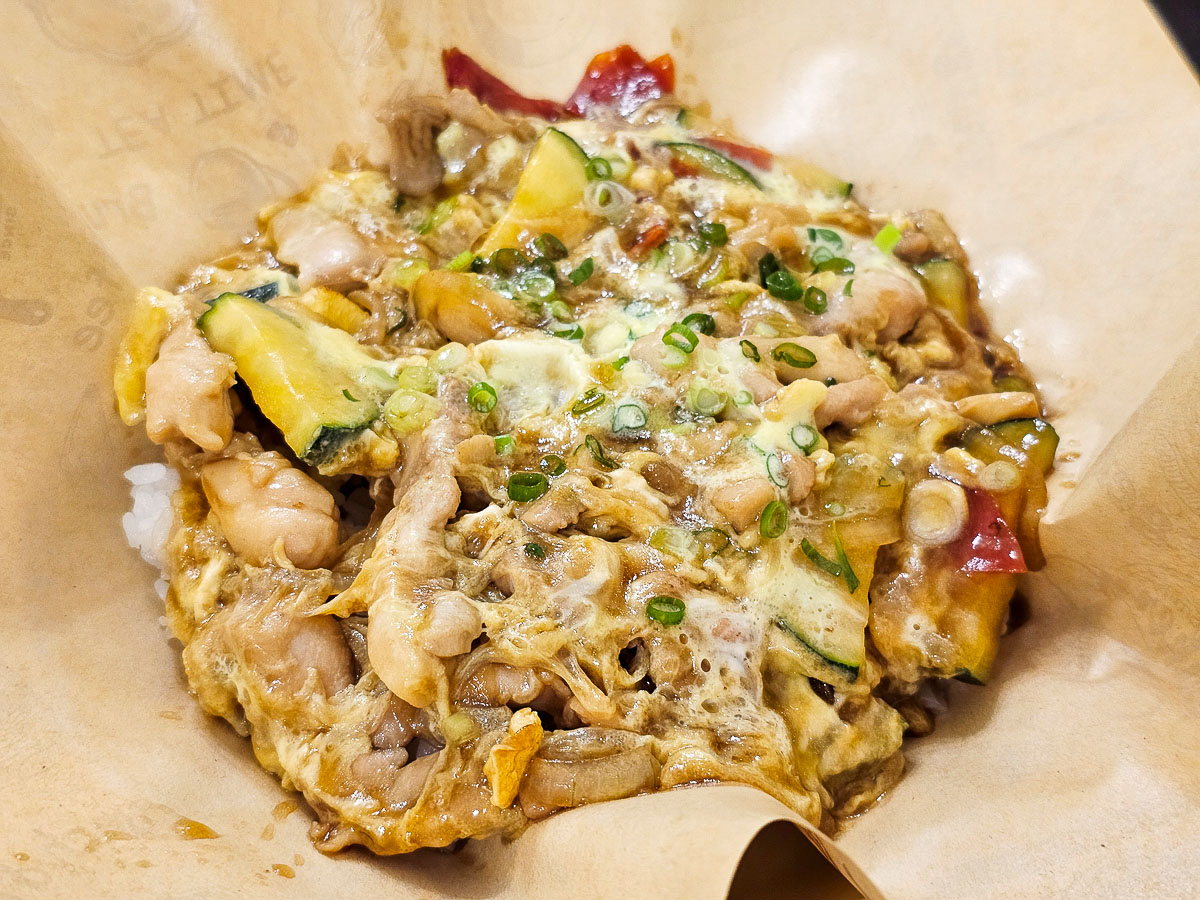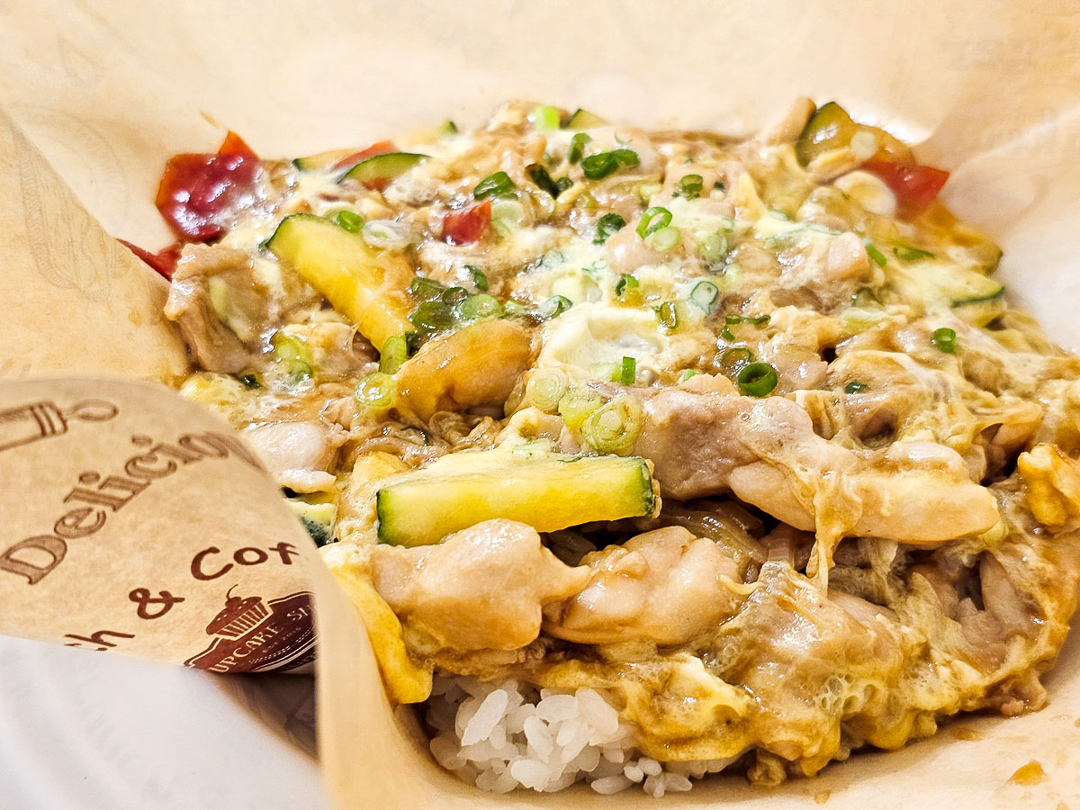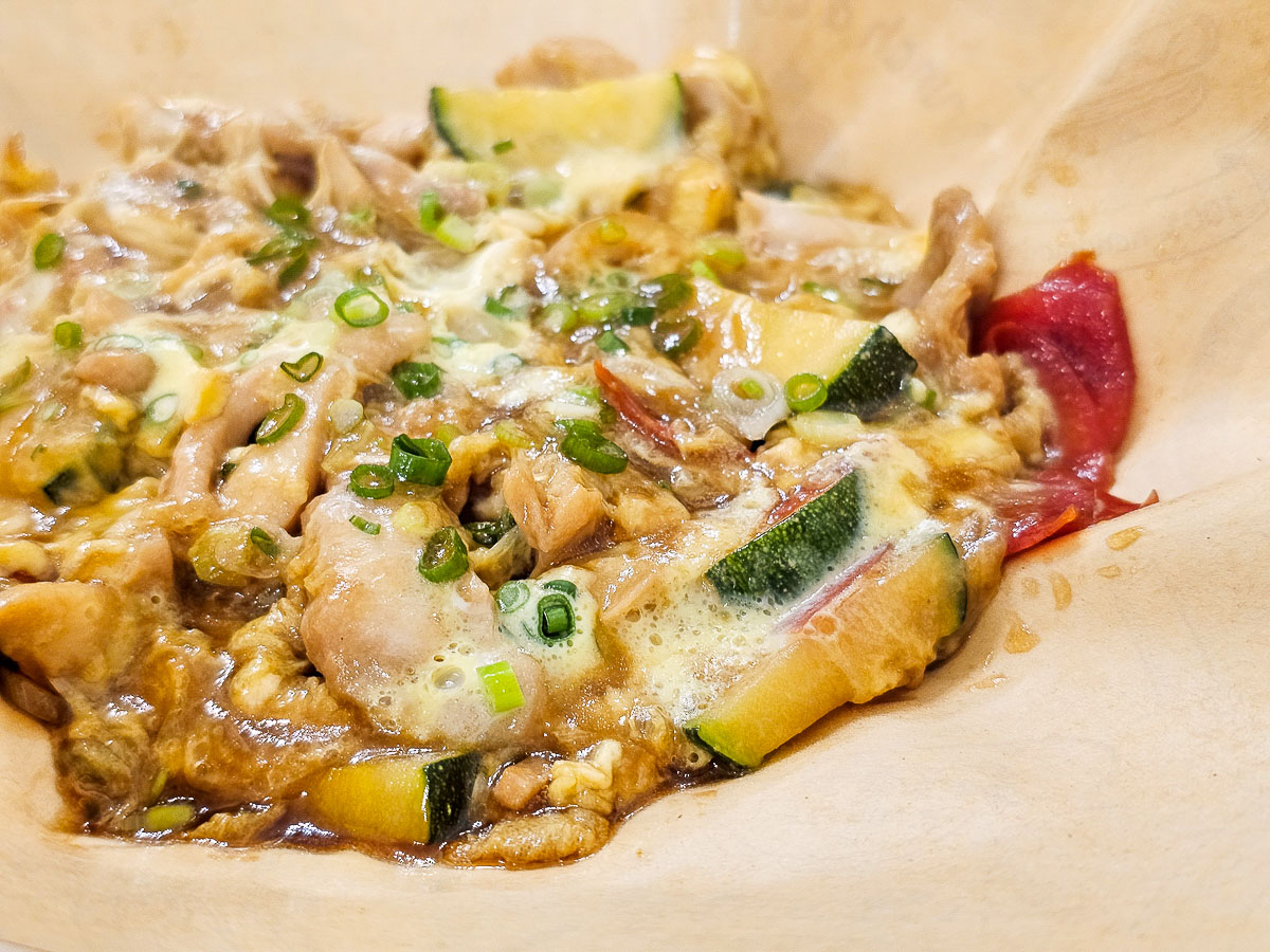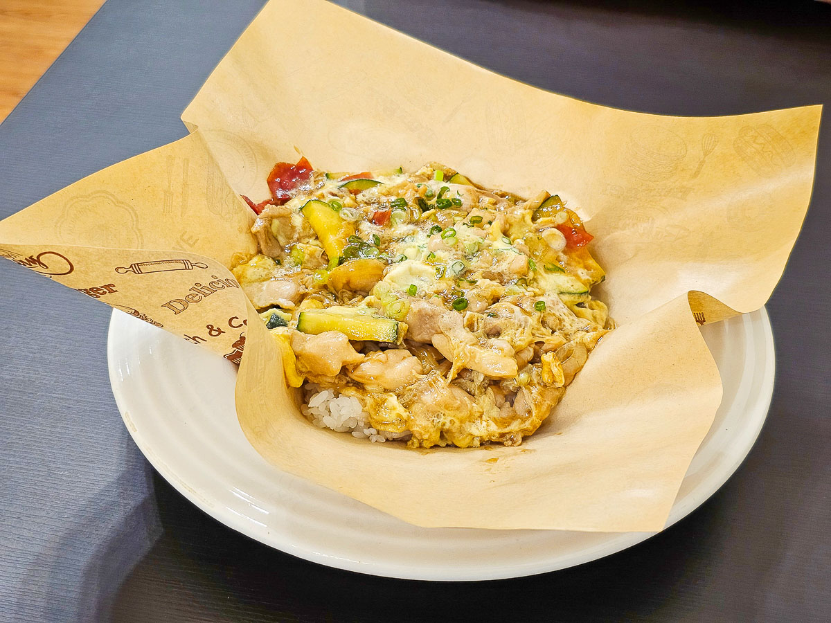 一上桌擺盤真的很吸睛,食材的配色讓人食指大動,但照燒雞丼飯放在防油紙上,雖然拍照好看,但覺得不是很環保,已經內用了,就是希望減少垃圾的產生囉~